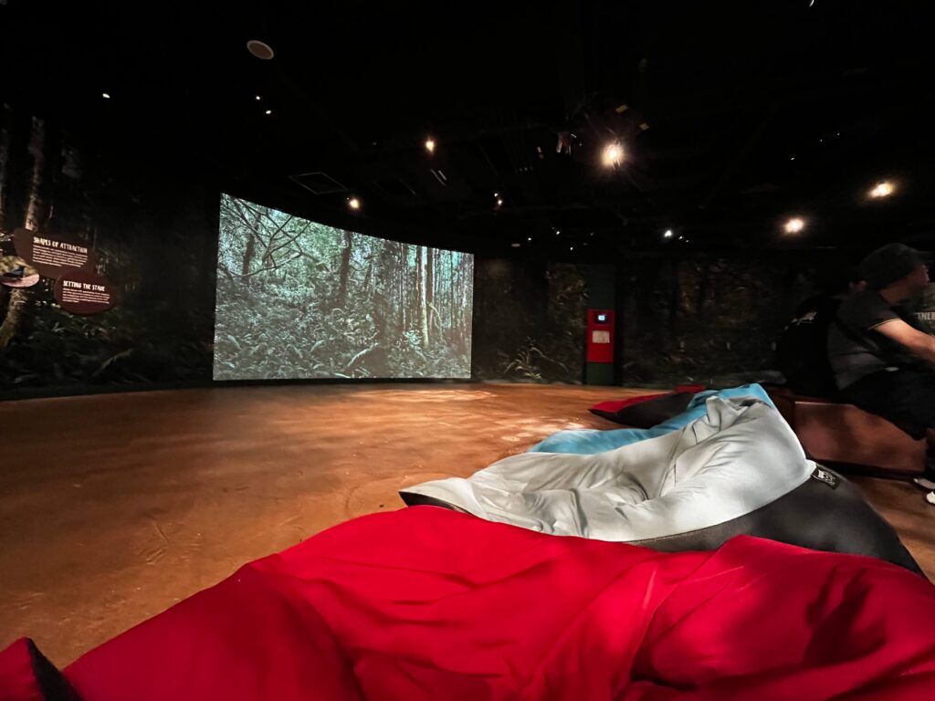 鳥のエリアは大きく8つに区切られており、その境目には休憩・冷房スペースが用意されています(スぺースの広さ、椅子はそれぞれ異なります)。暑さにやられそうなタイミングで丁度用意されており、ついでに鳥について学ぶことができるので、とてもありがたかったです😵