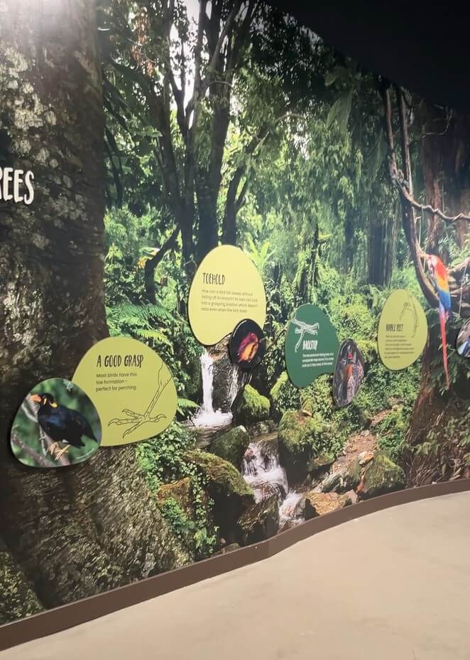 各エリアにはそのテーマを象徴する音楽が流れていたり、テーマに沿ったオブジェや環境があり、入っただけでワクワク!たくさんの鳥を至近距離で観察することができ、新鮮な体験でした!✨