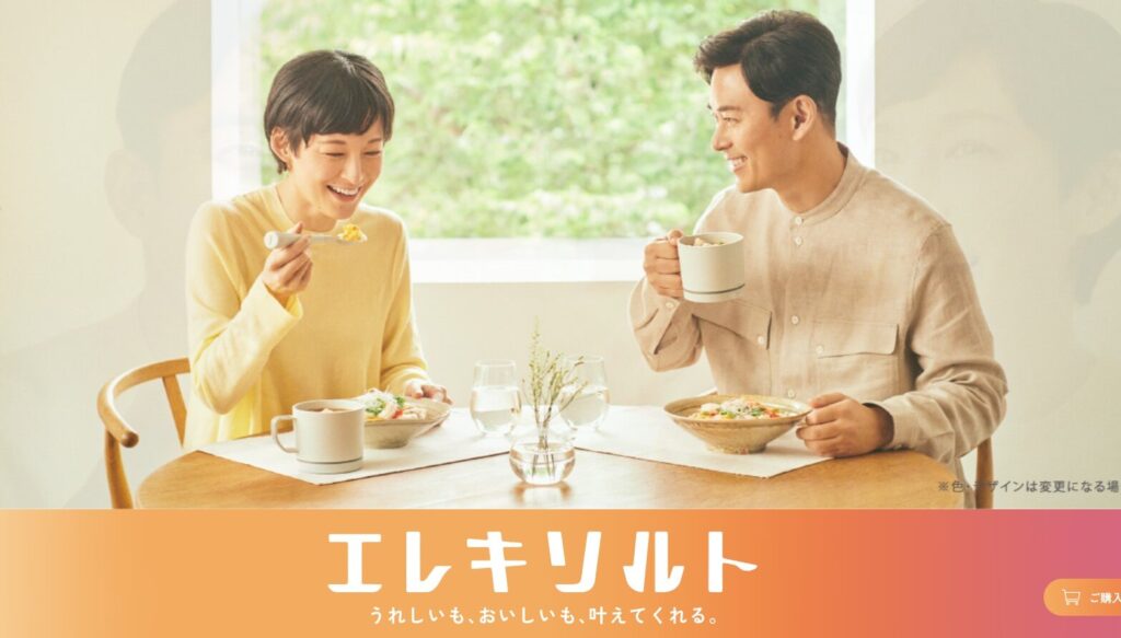 エレキソルトは、微弱な電気のチカラによって、食事の塩味やうま味を引き出してくれる減塩サポート食器です。