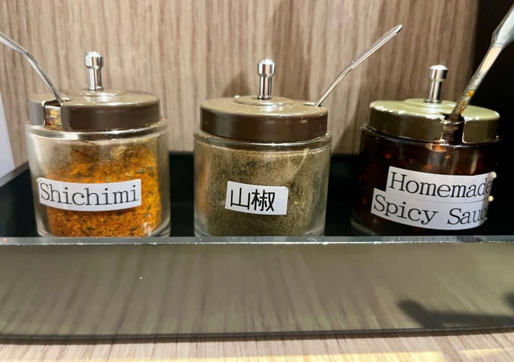 パウダー系の調味料は、七味・参照・ホームメイドスパイシーソースの3つ。ホームメイドスパイシーソースは、固形系でした👀