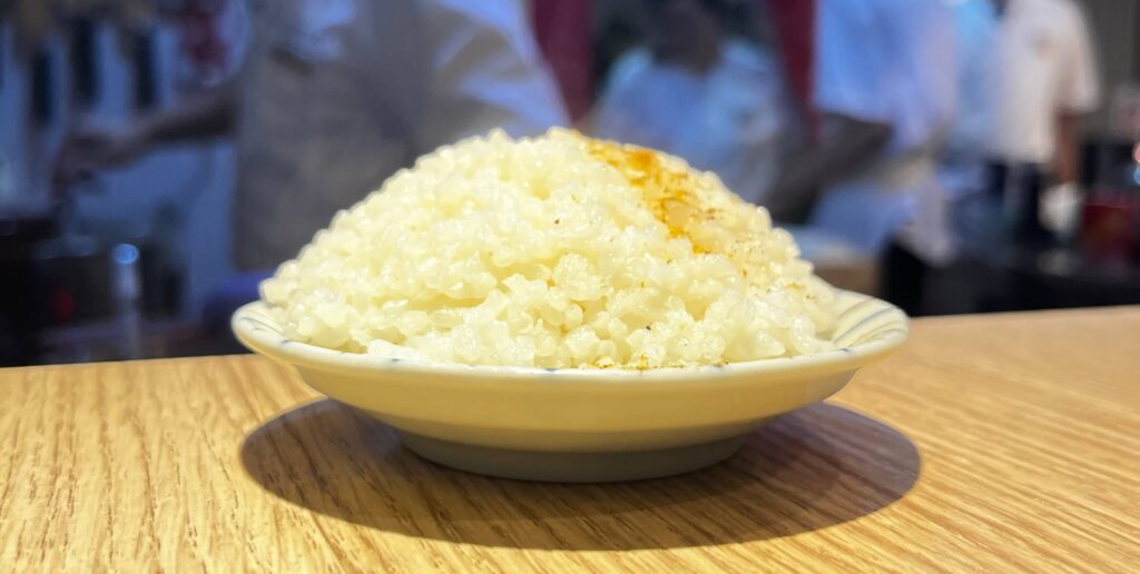 〆のご飯は無料でした。手のひらサイズのお皿に小盛のごはんでした。