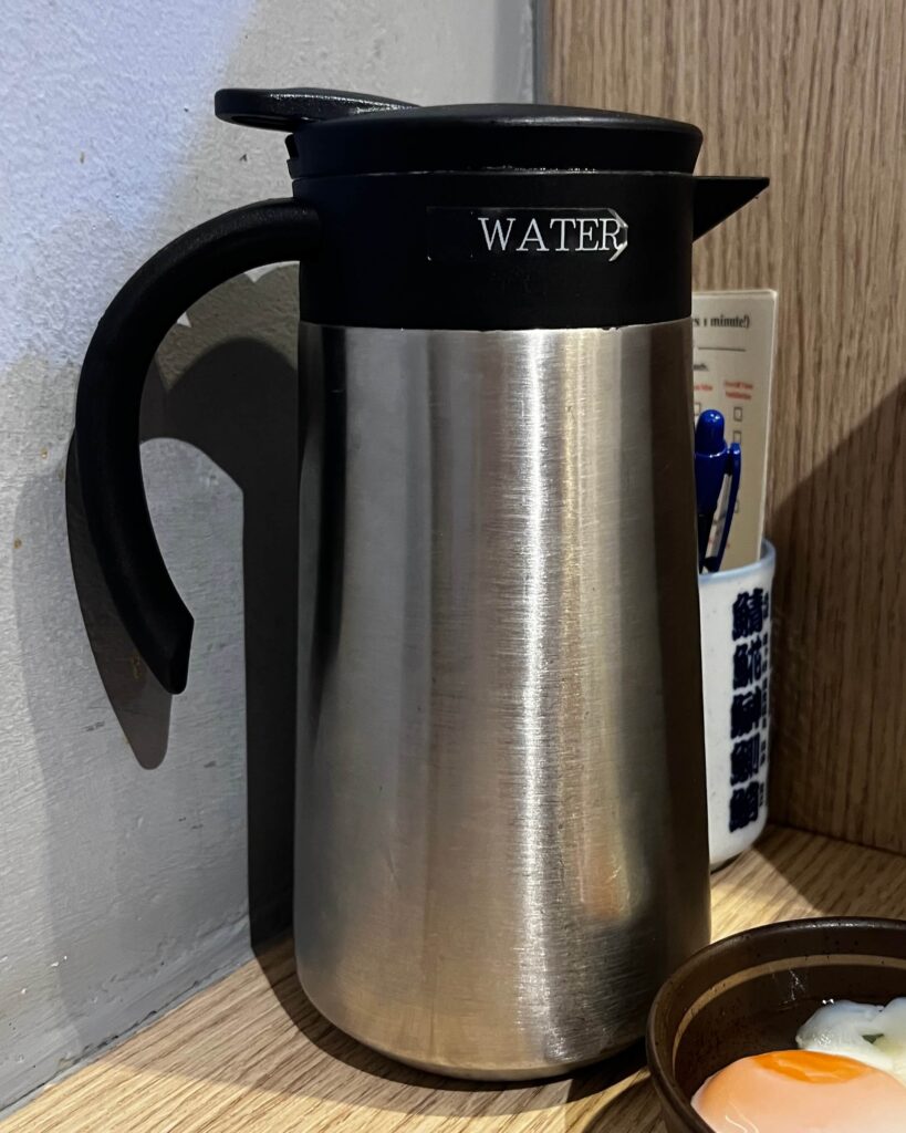 お水はカウンターにポットがあり、自分のペースでお変わりができました。またお手拭きもありました。