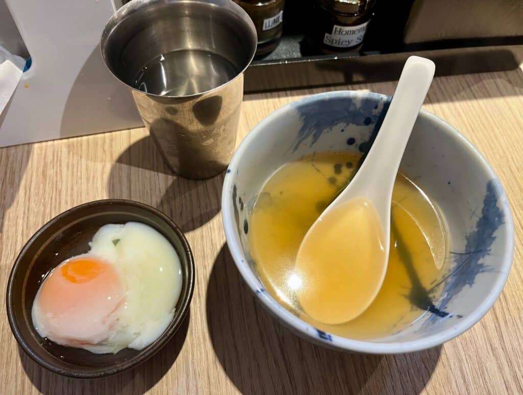 入店するとすぐ、スープ・卵・お水の3点セットが提供されました。