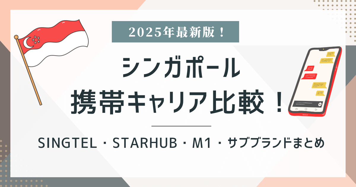 この記事では、シンガポールの主要キャリア(Singtel、StarHub、M1、SIMBA MOBILE)や、それぞれの格安SIMブランドを徹底比較します!在住者から旅行者まで、自分にぴったりの通信手段はどれか、ぜひご覧ください👀