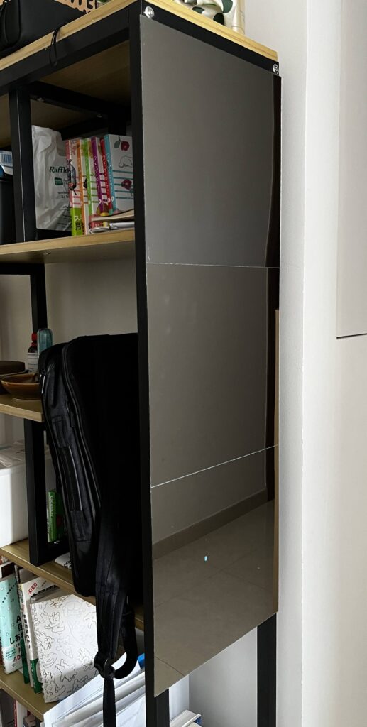 シンガポールでなるべく粗大ごみを作りたくなかったため、購入した棚に貼り付けられる大きさの割れない鏡を購入。こちらも我が家にフィット!今では欠かせない存在になっています✨