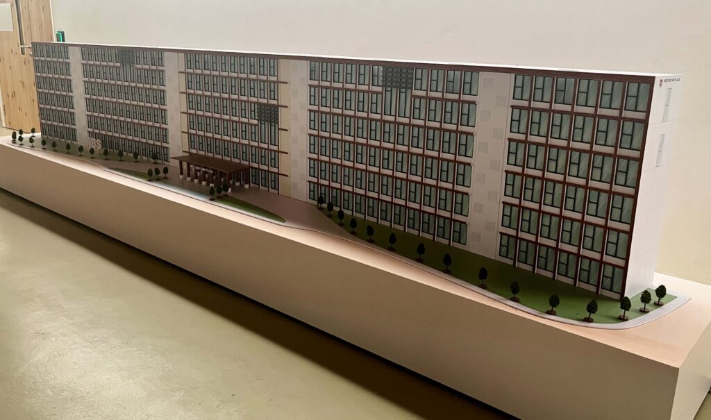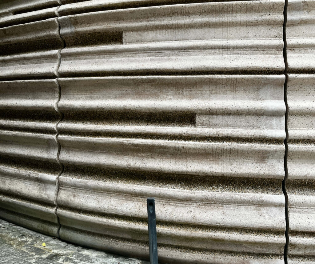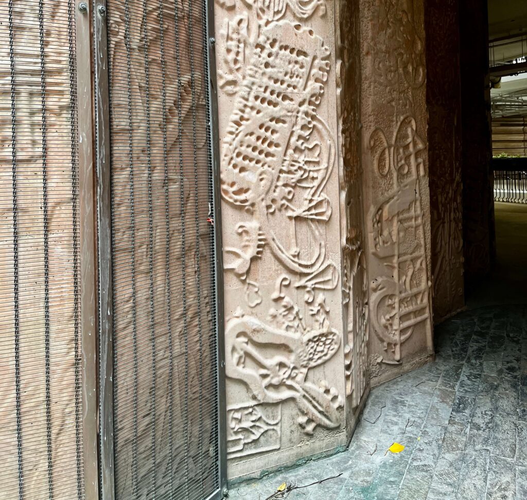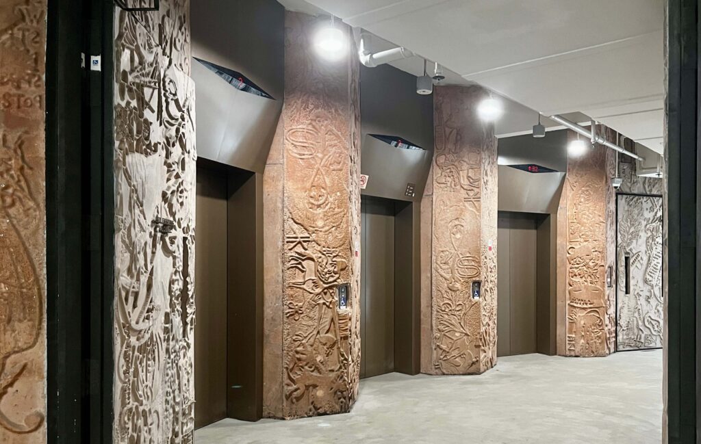 8階建て、12本のタワー状ユニットが集まった構造です。一部の壁には壁画のような特徴的な模様も施されていました。