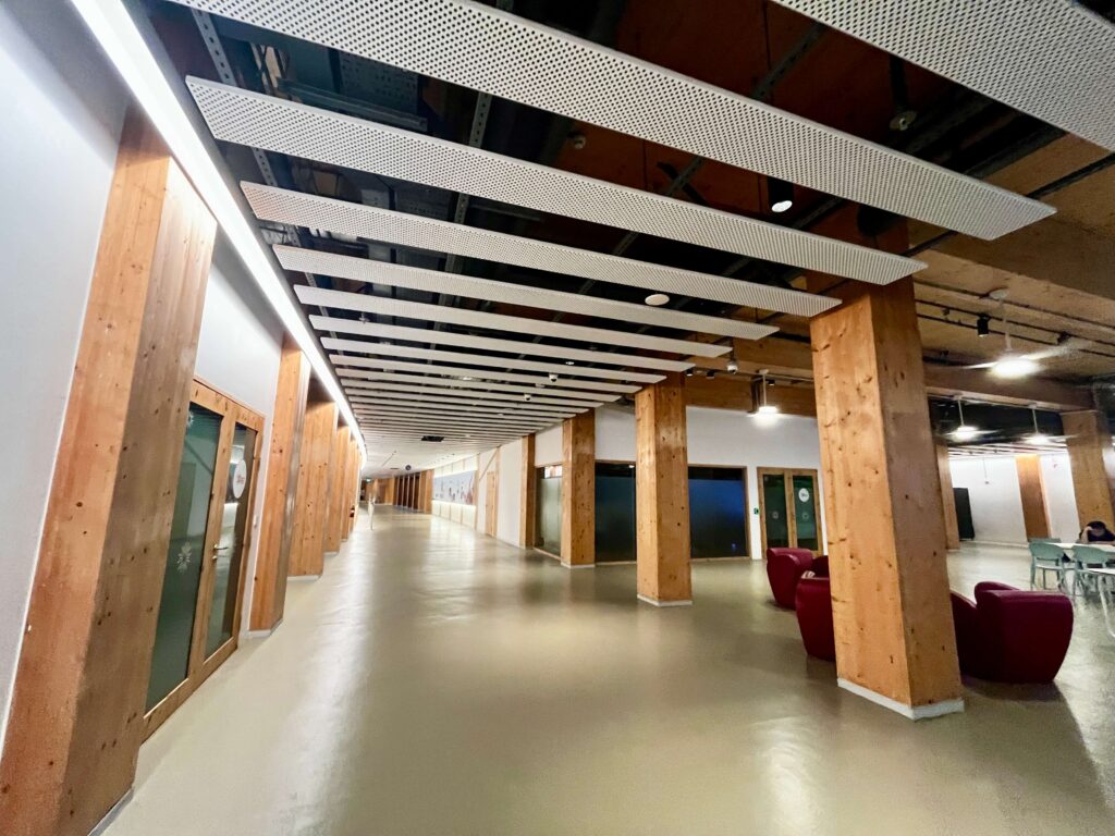 従来型の廊下+教室のレイアウトを排除し、「偶発的な交流が生まれる空間」 をコンセプトに設計されてるとのこと。ヘザウィック本人はこれを “the anti-corridor building(廊下のない建物)” と呼んでいるそうです👀(リンク)
