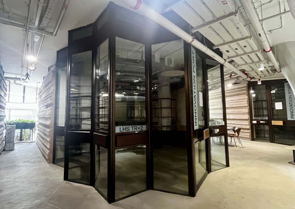 各部屋も独特な丸い形となっていました。これは上下関係のないディスカッション中心の授業を促すことを意図したものとのことです。